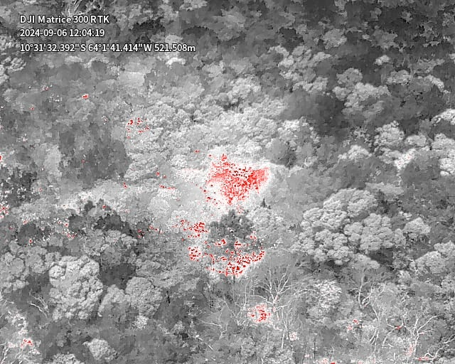 As imagens captadas pelos drones detectam focos de incêndios até mesmo em áreas de floresta densa, utilizando sensor de calor. Na fiscalização, os drones auxiliam na identificação de atividades ilegais, como desmatamento e queimadas criminosas, promovendo a proteção do meio ambiente. O uso de aeronaves remotamente pilotadas no Parque Estadual Guajará-Mirim tem sido uma ferramenta estratégica no combate aos incêndios e na fiscalização ambiental, fortalecendo a preservação do patrimônio natural e reforçando o compromisso do governo de Rondônia com a sustentabilidade e a proteção do ecossistema.